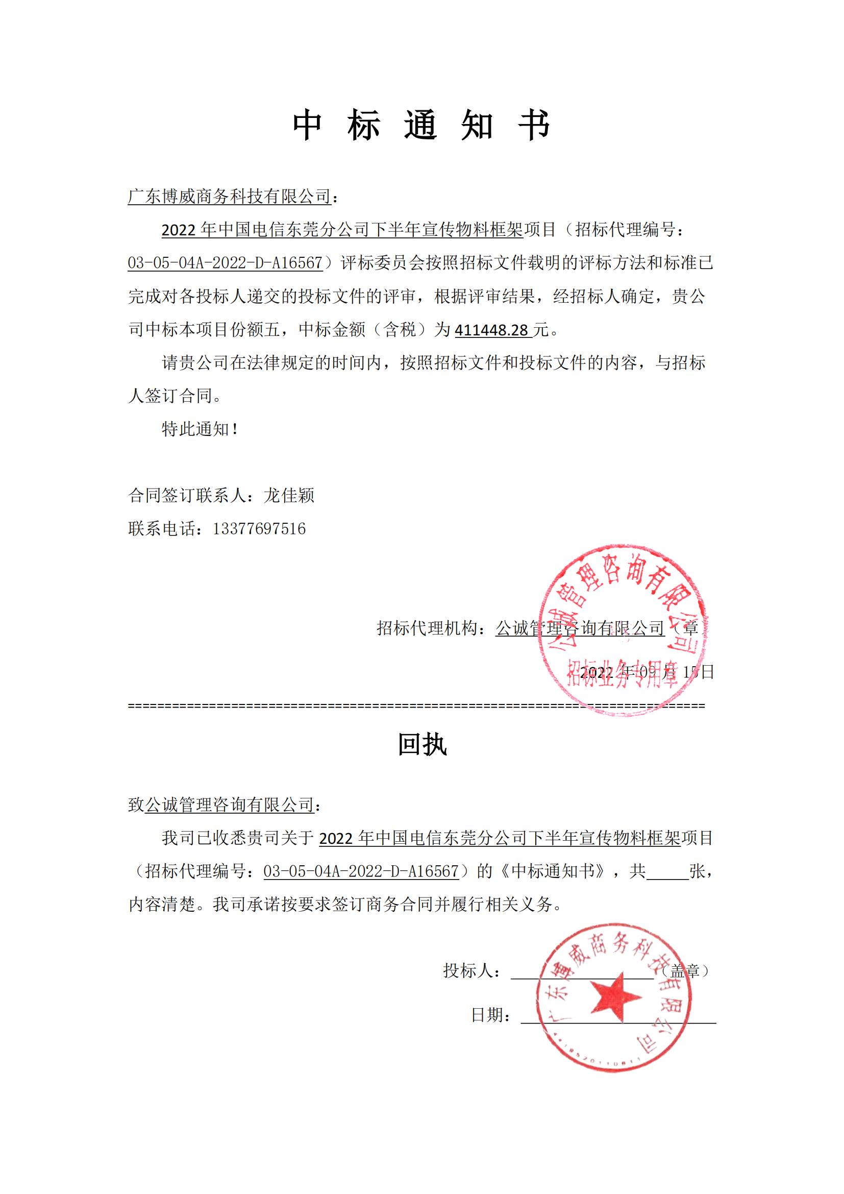 热烈祝贺我公司成功中标 中标中国电信东莞分公司宣传 项目,我们对取得这一成就感到自豪,并衷心感谢所有参与项目的同仁伙伴们的辛勤付出和专业能力。同时,感谢我们的合作伙伴和客户对我们的信任和支持,我们将继续保持紧密合作,共同推动项目的圆满成功完成。
