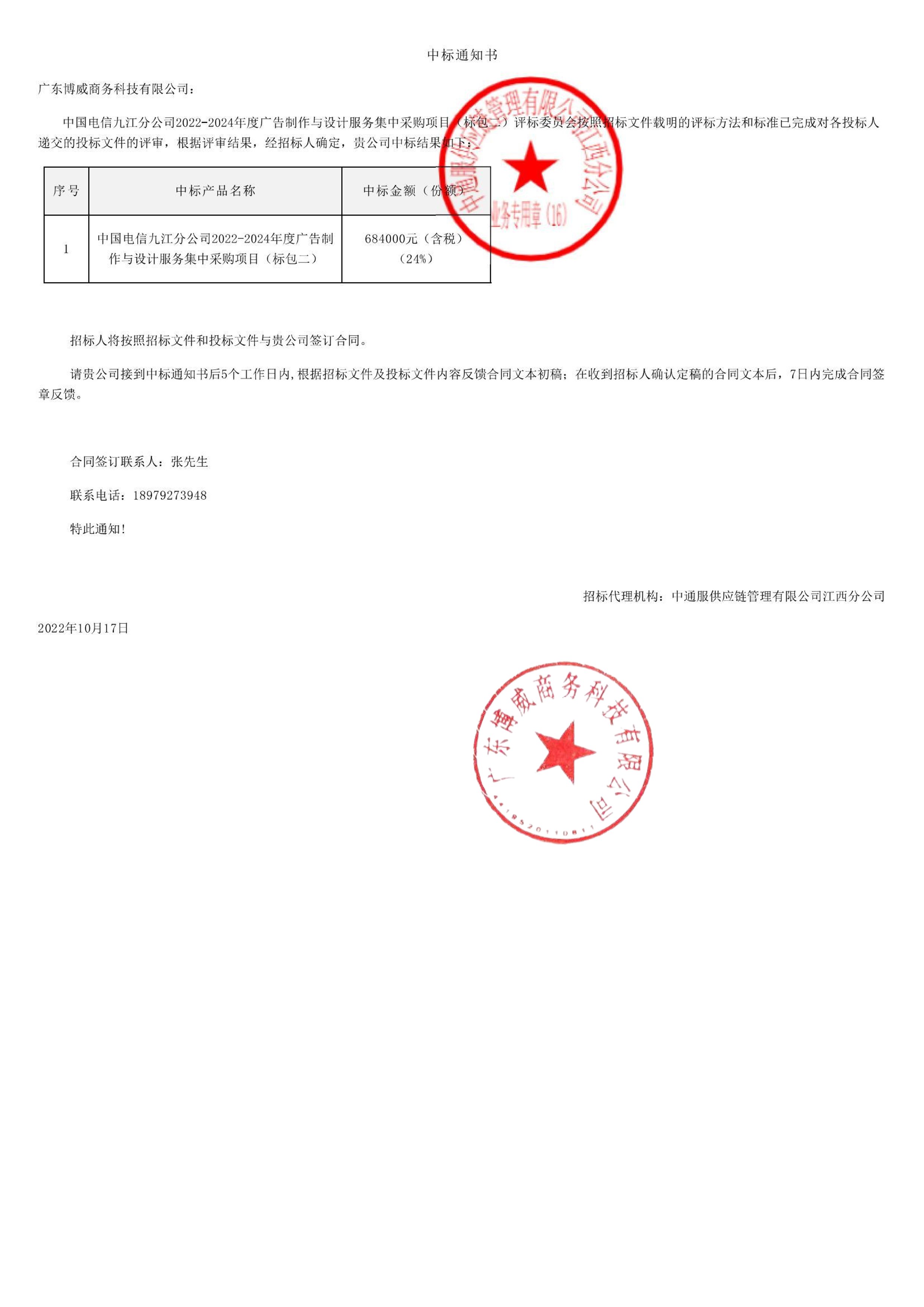热烈祝贺我公司成功中标中国电信江西公司九江广告设计制作 项目,我们对取得这一成就感到自豪,并衷心感谢所有参与项目的同仁伙伴们的辛勤付出和专业能力。同时,感谢我们的合作伙伴和客户对我们的信任和支持,我们将继续保持紧密合作,共同推动项目的圆满成功完成。